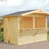 Marknadskiosken Stella är en bod för försäljare som vill bjuda det bästa för stämningen. Kiosken har under skyddstak två luckor som kan öppnas separat eller samtidigt. Bakdörren har cilinderlås. Kiosken är tillverkad i långsamtväxande nordisk gran, ett hållbart material med hög kvalitet och särskilt anpassad för de svenska tuffa väderförhållandena. Kiosken levereras i färdiga väggelement med alla nödvändiga fästelement inkluderade. Alla övriga detaljer är färdigkapade vilket gör den enkel att bygga ihop på rätt sätt.
