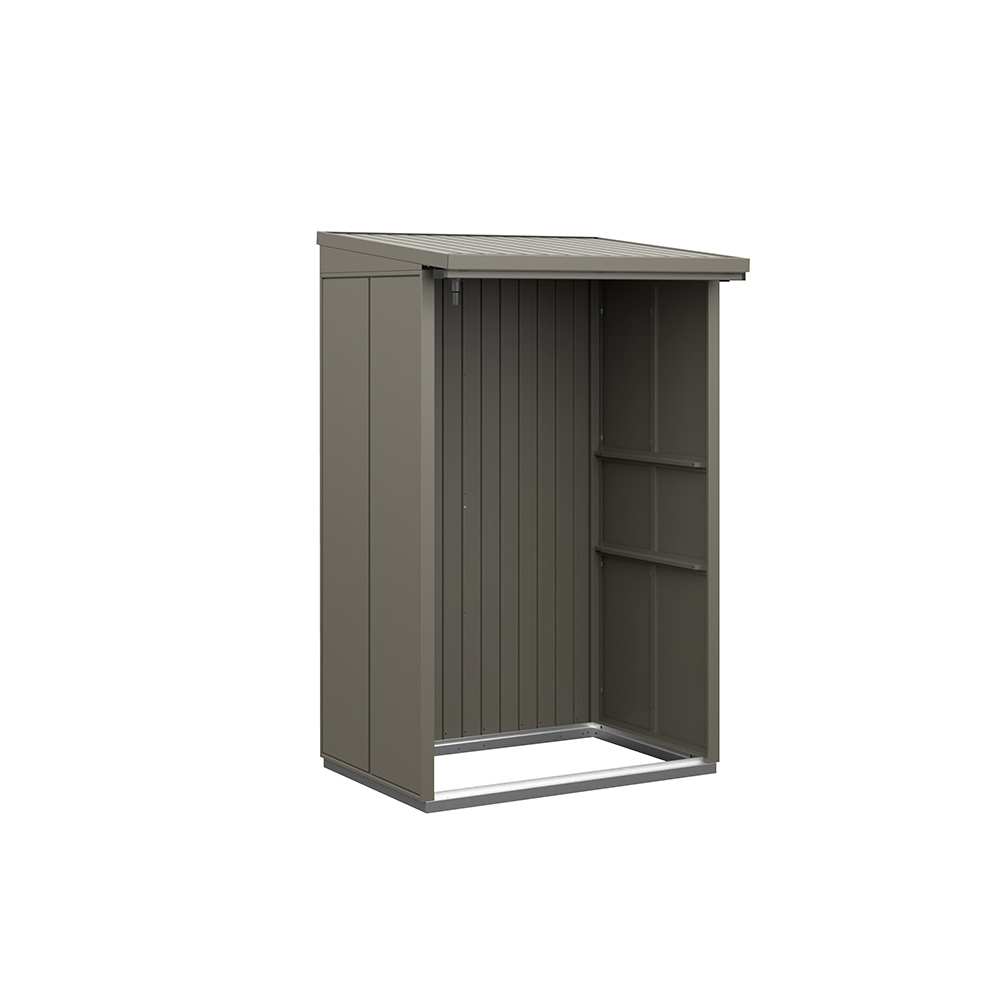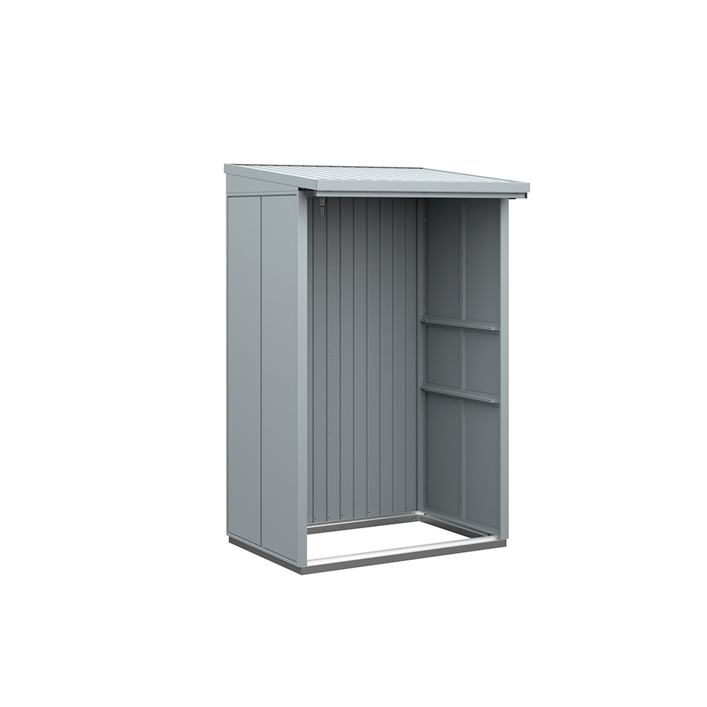 Vedskjulet får sin höga stabilitet och slitstyrka av dess stålkonstruktion och den höga materialtjockleken. Grundram i aluminium ingår alltid som standard. Alla skruvar och gångjärn är förzinkade och därmed skyddade mot oxidation. Vedskjulet har en integrerad hängränna för takavvattning. Bland tillvalen erbjuds t ex. stuprör, aluminiumgolv och bakre vägg.
