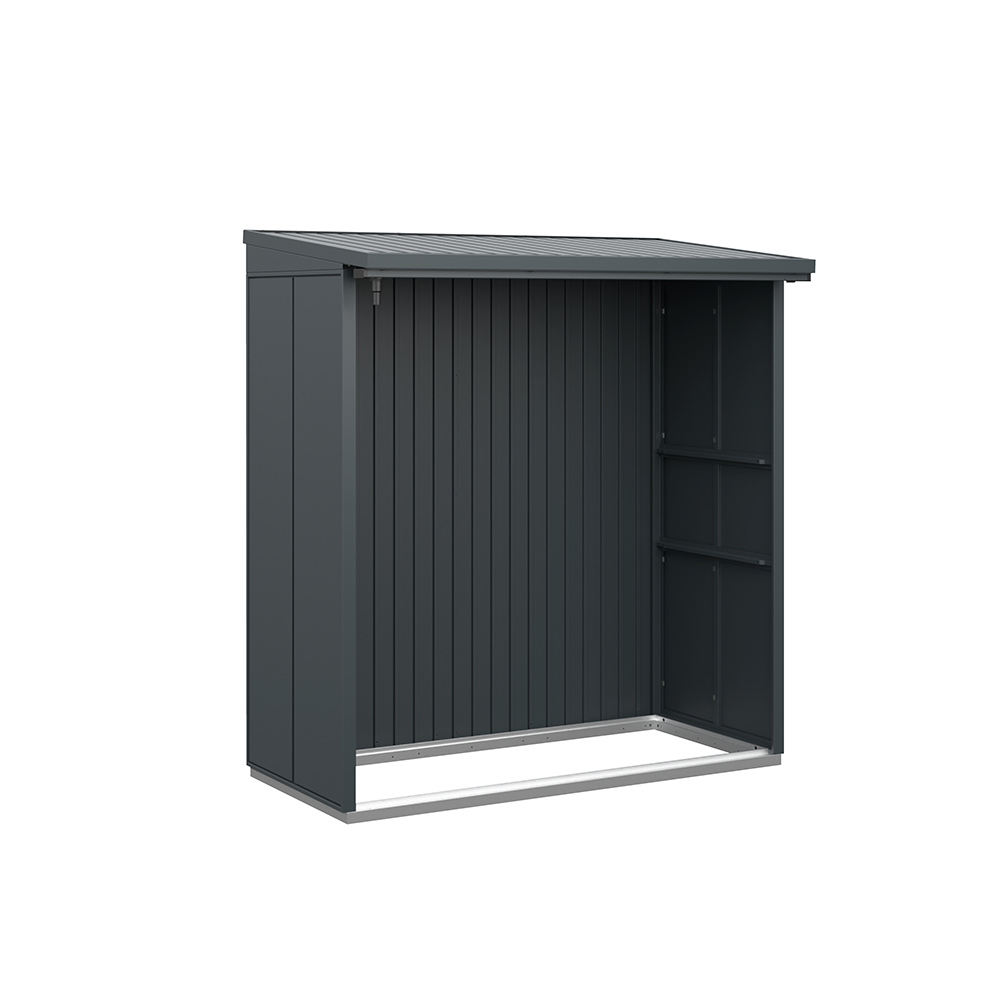 Det finns många fördelar med en vedskjul i metall. Den galvaniserade och pulverlackerade stålplåten håller formen och kräver lite underhåll, är både väder- och mögelbeständig. Plåten som används består till 25% återvunnet material och vedbodarna är 100% återvinningsbara.