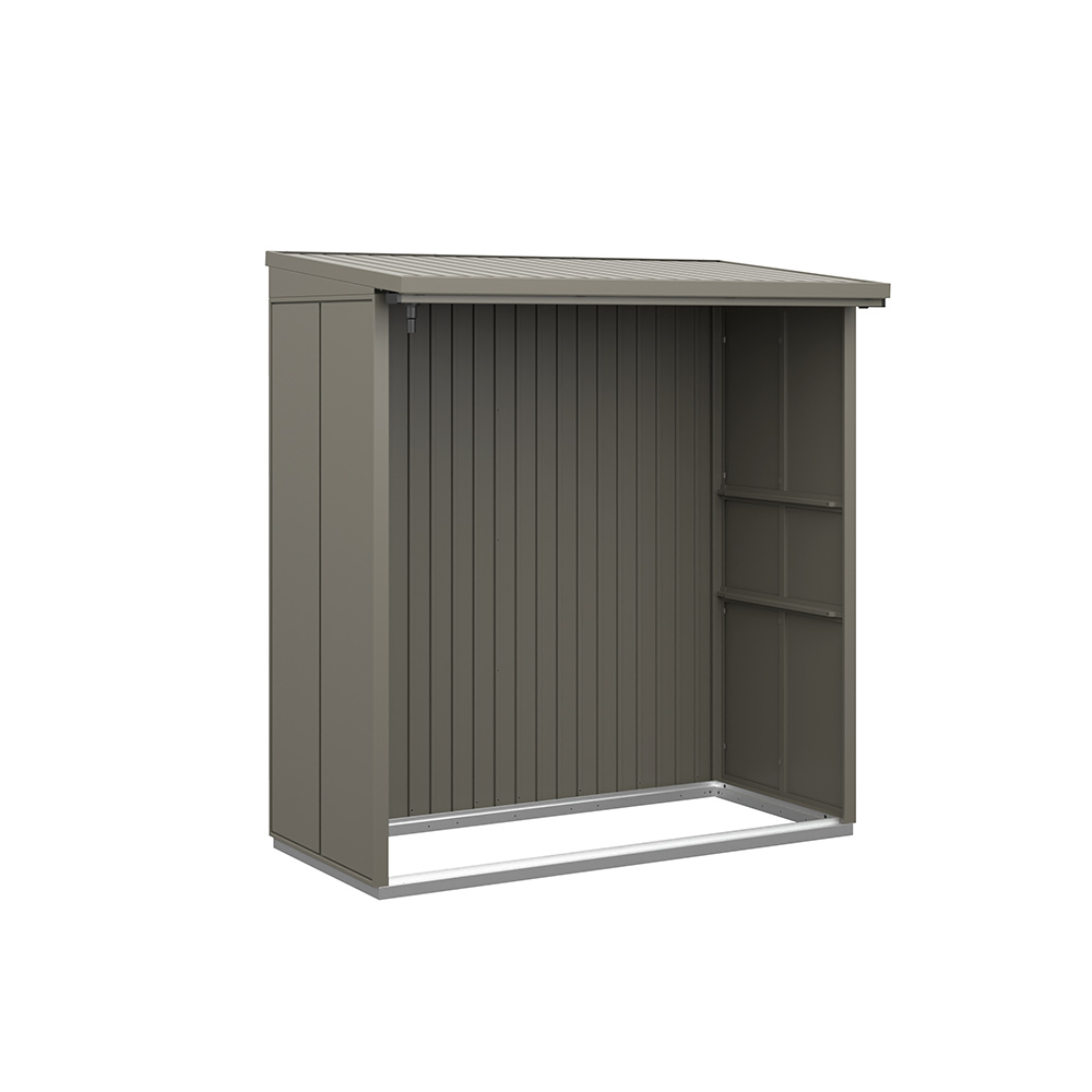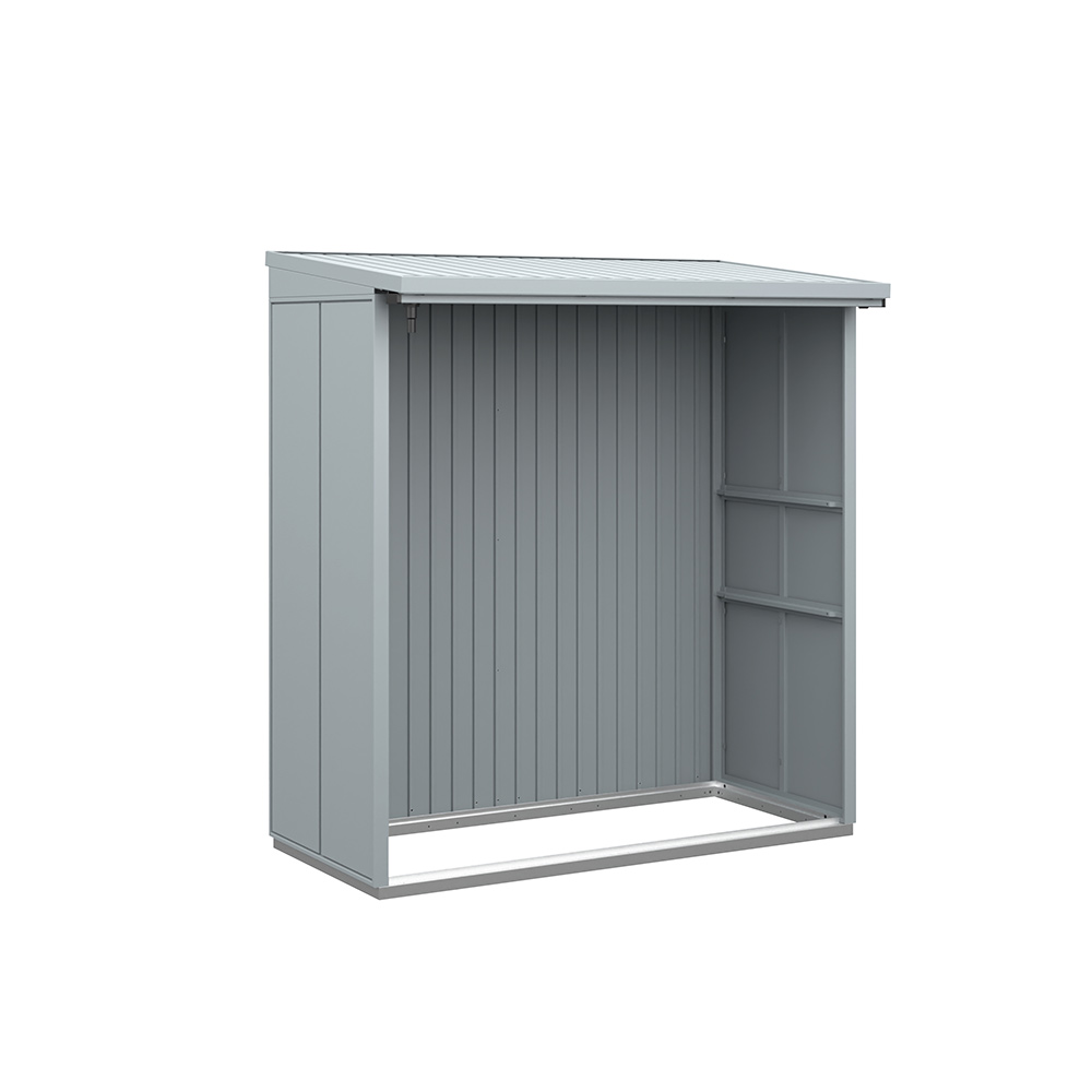 Vedskjulet får sin höga stabilitet och slitstyrka av dess stålkonstruktion och den höga materialtjockleken. Grundram i aluminium ingår alltid som standard. Alla skruvar och gångjärn är förzinkade och därmed skyddade mot oxidation. Vedskjulet har en integrerad hängränna för takavvattning. Bland tillvalen erbjuds t ex. stuprör, aluminiumgolv och bakre vägg.