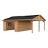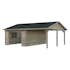 Palmakos garage Roger 19,0+16,2 m2 med solid 44 mm knuttimmervägg är inte bara den perfekta lösningen för att hålla din bil säkert inomhus, utan den har också funktionaliteten att behålla dina familjefordon under den skyddande carporten, samtidigt som det ger extra utrymme för dina förvaringsbehov. De generösa måtten gör att du kan parkera din bil bekvämt och har extra utrymme för verktyg, cyklar och andra föremål.