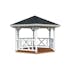 Paviljong tillverkad av nordisk gran med 120x120 mm starka limträstolpar och räcke. 5 års garanti.