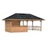 Detta set med en lång bakvägg gör det perfekt för ett luftigt utekök. Stugan är tillverkad av långsamväxande nordisk gran, med 120x120 mm starka limträstolpar och 19 mm takbrädor. Ett slitstarkt och högkvalitativt material som är särskilt anpassat till de tuffa svenska väderförhållandena. Levereras som byggsats inklusive alla fästelement.