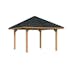 Tillverkad av nordisk gran med 120x120 mm starka limträstolpar och 19 mm takbrädor.