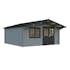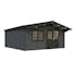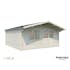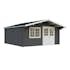 Stuga av 40 mm knuttimmer, vindtäta dubbelhaksknutar och 92 cm takutsprång över entrén. Stugan har ett spröjsat enkelfönster med vrid- och tippfunktion samt en halvglasad pardörr med limträkarm, cylinderlås och rostfri plåt som skyddar tröskeln. 5 års garanti.