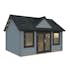 Palmakos stuga Claudia 14,2 m2 visar upp en takdesign i klassisk klockhusstil. Medan många kunder uppskattar det eleganta taket i viktoriansk stil, föredrar andra ett enklare topptak. Av denna anledning är monteringen av takkupan valfri.