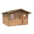 En ny stuga Caroline med modernt utseende. Stugan har utvändiga fönsterluckor som glider på två metallskenor och som kan skjutas för fönstren och skydda mot insyn eller ett besvärande solsken. Perfekt som gäststuga eller för sommarfester.