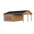 Palmakos stuga Irene 19,0+16,2 m² har ett klassiskt sadeltak och en rymlig takyta som är perfekt för att koppla av i trädgården, hålla små sammankomster, njuta av grillfest och middagsbjudningar. Den täckta takytan erbjuder gott om skydd för ditt utekök och trädgårdsmöbler. Den är idealisk för alla som vill skapa ett mångsidigt och bekvämt friluftsliv. Detta trädgårdshus kombinerar modern design med praktisk funktionalitet, vilket gör det perfekt för en mängd olika användningsområden.