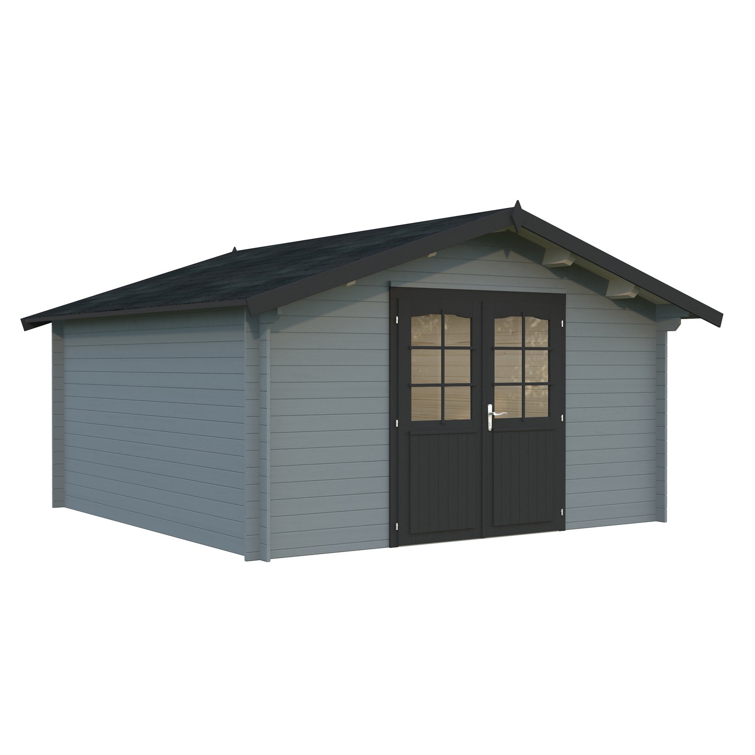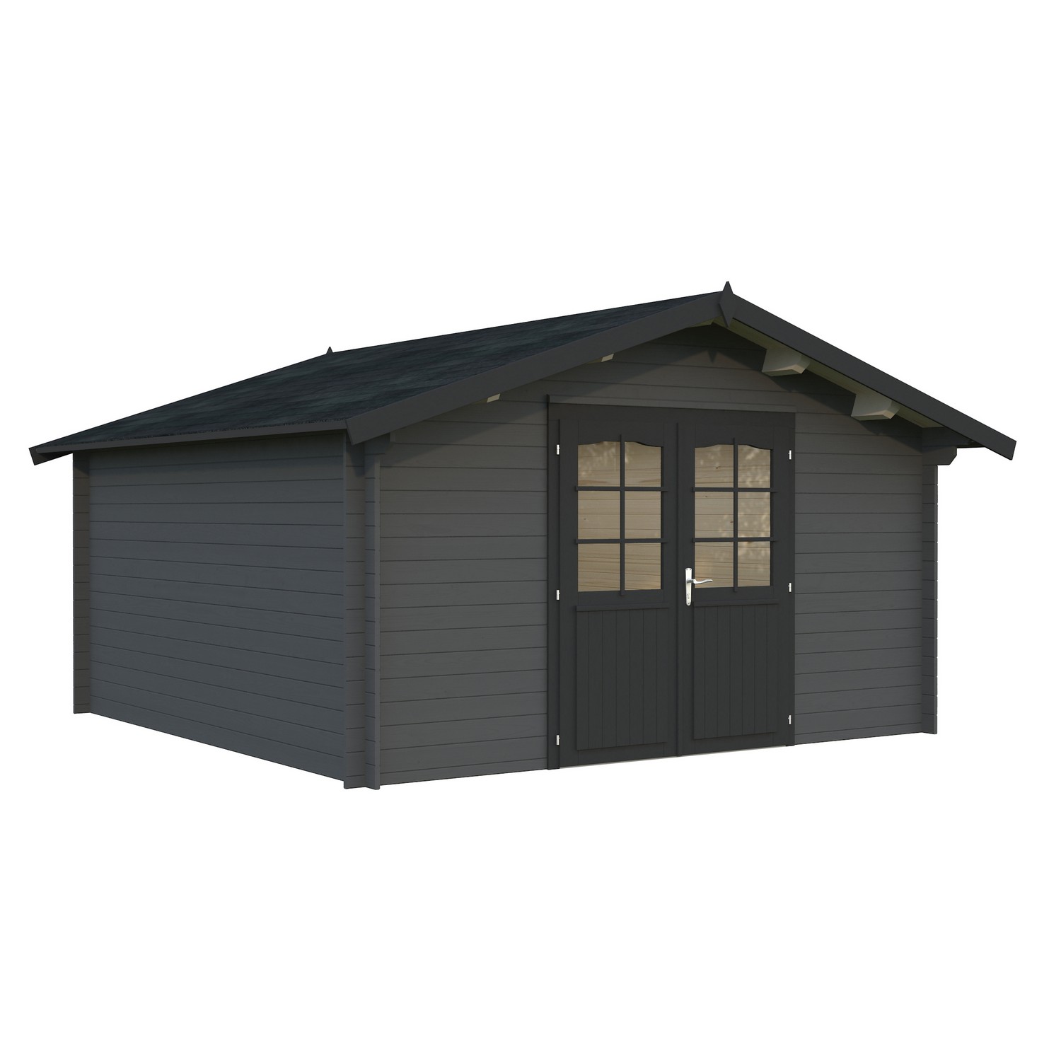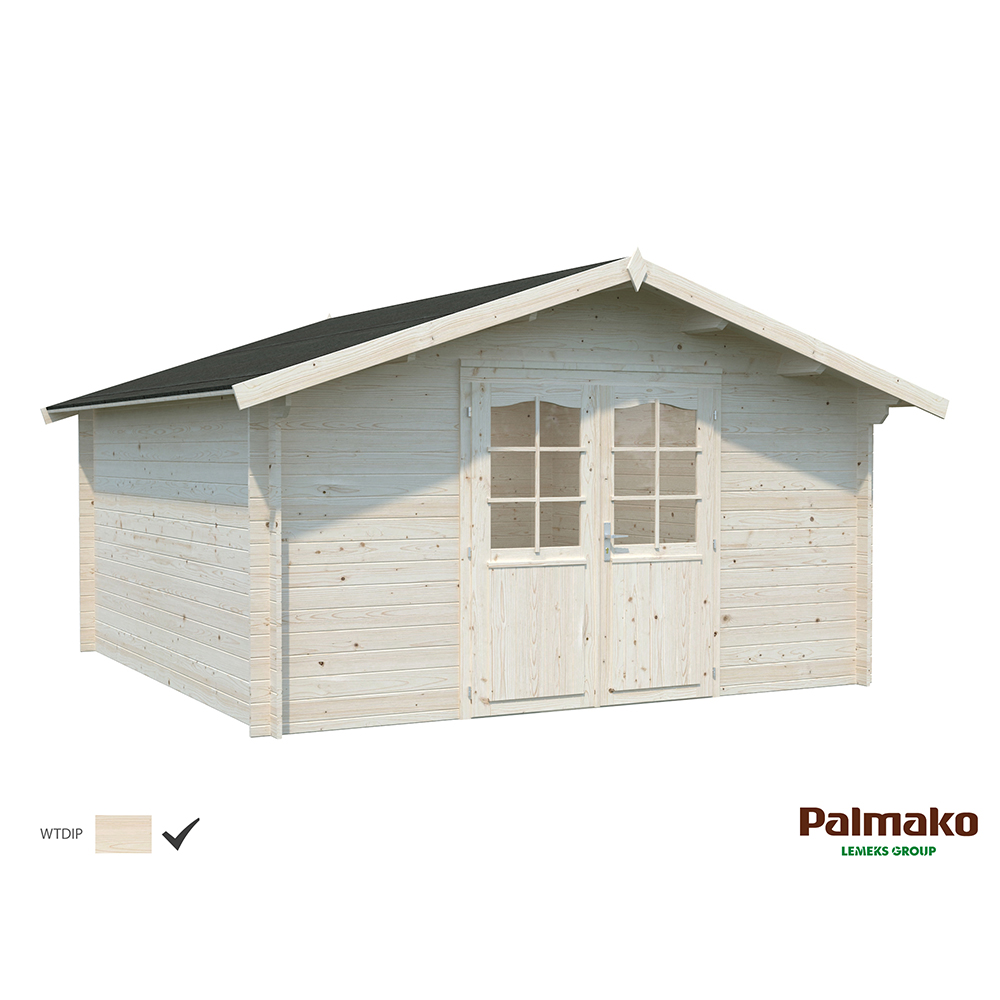 Stugan Irene från Palmako är en knuttimrad stuga med maximalt ljusinsläpp. Dubbeldörrarna kan öppnas upp och sudda ut gränsen mellan inne och ute. En perfekt plats för att samla dina nära och kära i din trädgård, eller kan användas som gästhus. Stugan knuttimras med 44mm tjocka väggar. Stugan är tillverkad i långsamtväxande nordisk gran, ett hållbart material med hög kvalitet och särskilt anpassat för de tuffa svenska väderförhållandena. Att knuttimra är det mest traditionella sättet att bygga stugor och har fortfarande många fördelar som exempelvis att du helt slipper skruvar och spik för att bygga ihop väggarna.