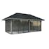 Tillverkad av nordisk gran med 120x120 mm starka limträstolpar och 19 mm takbrädor. Låsbara skjutdörrarna i 4 mm härdat glas och aluminium. 28 mm väggstockar.