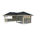 Taktäckning, golv och träbalksgrund ingår inte men kan köpas som tillval.