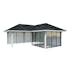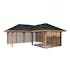 Tillverkad av nordisk gran med 120x120 mm starka limträstolpar och 19 mm takbrädor. Låsbara skjutdörrarna i 24 mm härdat dubbelglas (4 mm härdat glas - 16 mm luftspalt - 4 mm härdat glas) monterat i solida aluminiumprofiler. 28 mm väggstockar.