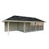 Tillverkad av nordisk gran med 120x120 mm starka limträstolpar och 19 mm takbrädor. Låsbara skjutdörrarna i 24 mm härdat dubbelglas (4 mm härdat glas - 16 mm luftspalt - 4 mm härdat glas) monterat i solida aluminiumprofiler. 28 mm väggstockar.