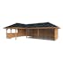 Tillverkad av nordisk gran med 120x120 mm starka limträstolpar och 19 mm takbrädor. Låsbara skjutdörrarna i 24 mm härdat dubbelglas (4 mm härdat glas - 16 mm luftspalt - 4 mm härdat glas) monterat i solida aluminiumprofiler. 28 mm väggstockar.
