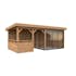 Tillverkad av nordisk gran med 120x120 mm starka limträstolpar och 19 mm takbrädor. Låsbara skjutdörrarna i 4 mm härdat glas och aluminium. 28 mm väggstockar.