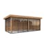 Tillverkad av nordisk gran med 120x120 mm starka limträstolpar och 19 mm takbrädor. Låsbara skjutdörrarna i 24 mm härdat dubbelglas (4 mm härdat glas - 16 mm luftspalt - 4 mm härdat glas) monterat i solida aluminiumprofiler. 28 mm väggstockar.