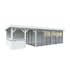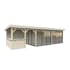 Tillverkad av nordisk gran med 120x120 mm starka limträstolpar och 19 mm takbrädor. Låsbara skjutdörrarna i 4 mm härdat glas och aluminium. 28 mm väggstockar.