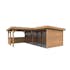 Tillverkad av nordisk gran med 120x120 mm starka limträstolpar och 19 mm takbrädor. Låsbara skjutdörrarna i 4 mm härdat glas och aluminium. 28 mm väggstockar. Jalusivägg.