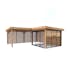 Tillverkad av nordisk gran med 120x120 mm starka limträstolpar och 19 mm takbrädor. Låsbara skjutdörrarna i 24 mm härdat dubbelglas (4 mm härdat glas - 16 mm luftspalt - 4 mm härdat glas) monterat i solida aluminiumprofiler. 28 mm väggstockar.