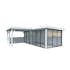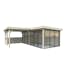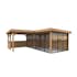 Tillverkad av nordisk gran med 120x120 mm starka limträstolpar och 19 mm takbrädor. Låsbara skjutdörrarna i 24 mm härdat dubbelglas (4 mm härdat glas - 16 mm luftspalt - 4 mm härdat glas) monterat i solida aluminiumprofiler. 28 mm väggstockar.