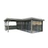 3 stora skjutdörrar släpper in ljus och värme. Stugan är tillverkad av långsamväxande nordisk gran, ett slitstarkt och högkvalitativt material som är särskilt anpassat till de tuffa svenska väderförhållandena.