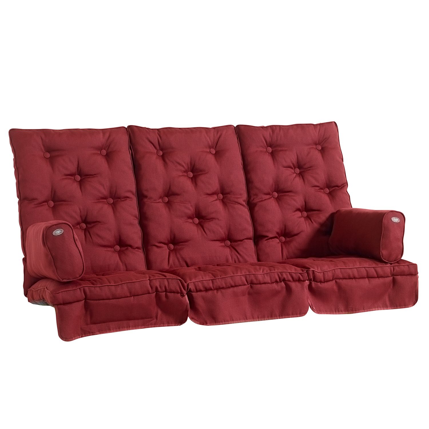Hammockset Canyon från Fritab. Boxsydda dynor och sidokuddar tillverkade i Dralon. Fibervadd svept runt en tjock polyeterkärna för mjuk komfort.