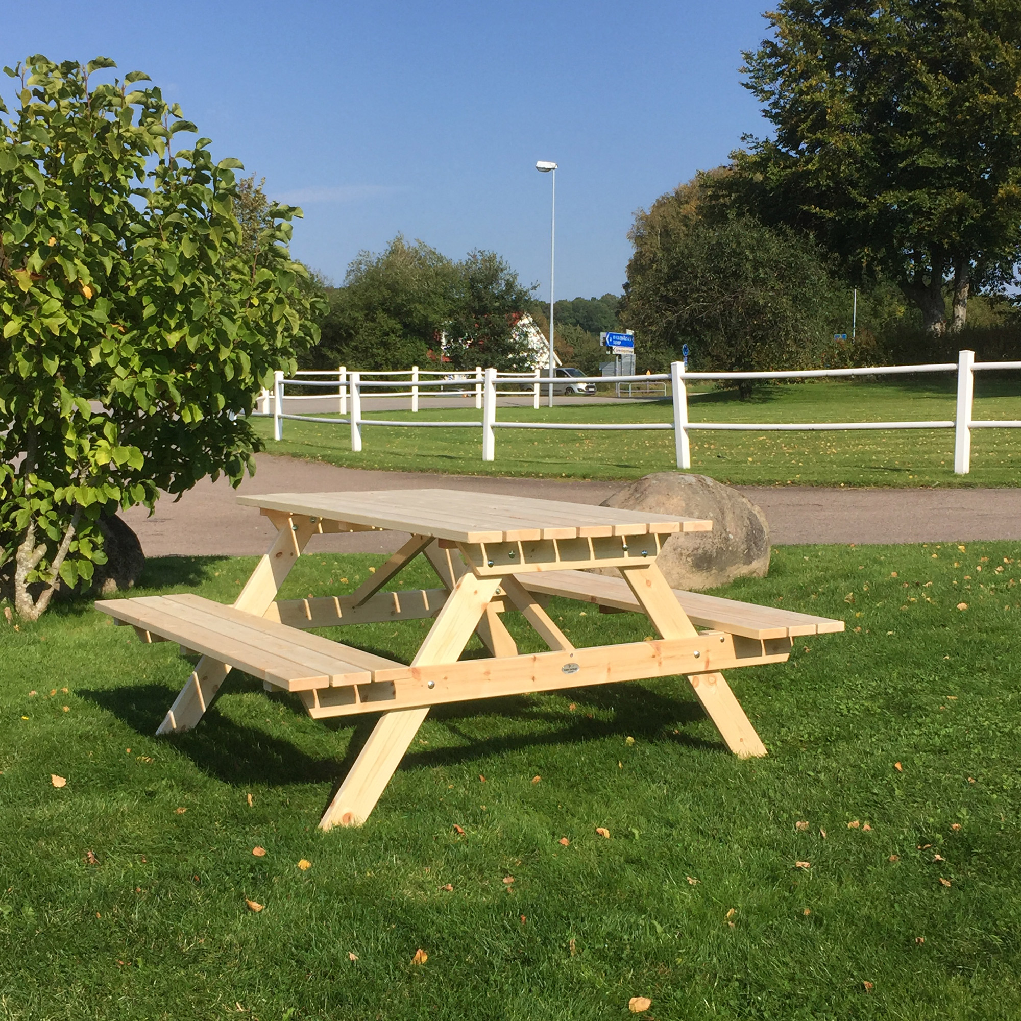 Ett behändigt parkset för 8 personer med bänk och bord i ett, strategiskt placerat på din favoritplats, fulländar den enklaste picknicken. De uppfällbara bänksitsarna erbjuder alltid torra och fräscha sittytor. Tillverkat i 27 mm svenskt FSC-furu. Levereras omonterad.