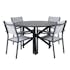 Matgrupp Alma från Venture Home. Matbord med en bordsskiva i aluminium. Matchas med 4 stycken Copacabana matstolar med en ram i aluminium.