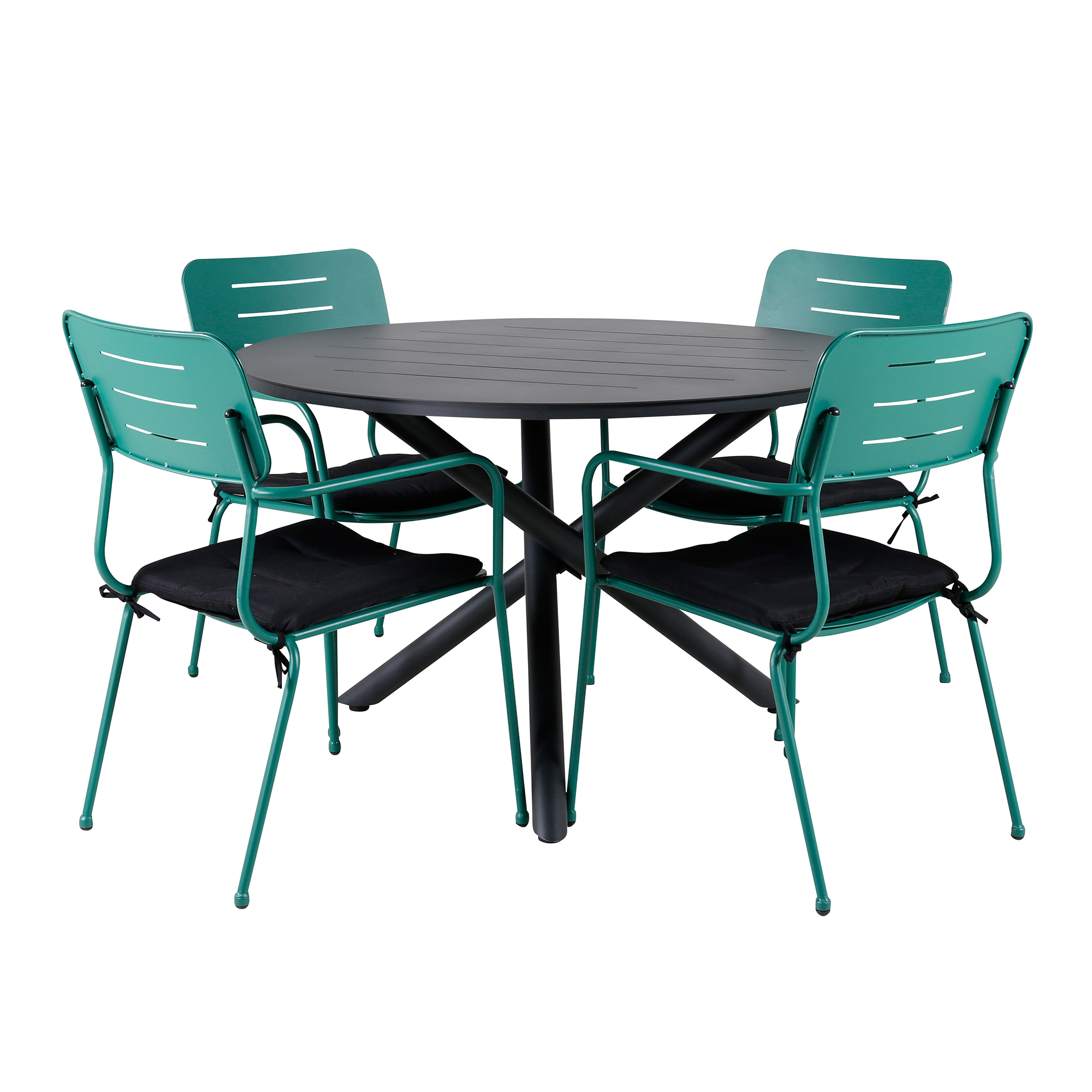 Matgrupp Ande från Venture Home. Matbord med en bordsskiva i aluminium. Matchas med 4 stycken Nemo matstolar med en ram i stål.