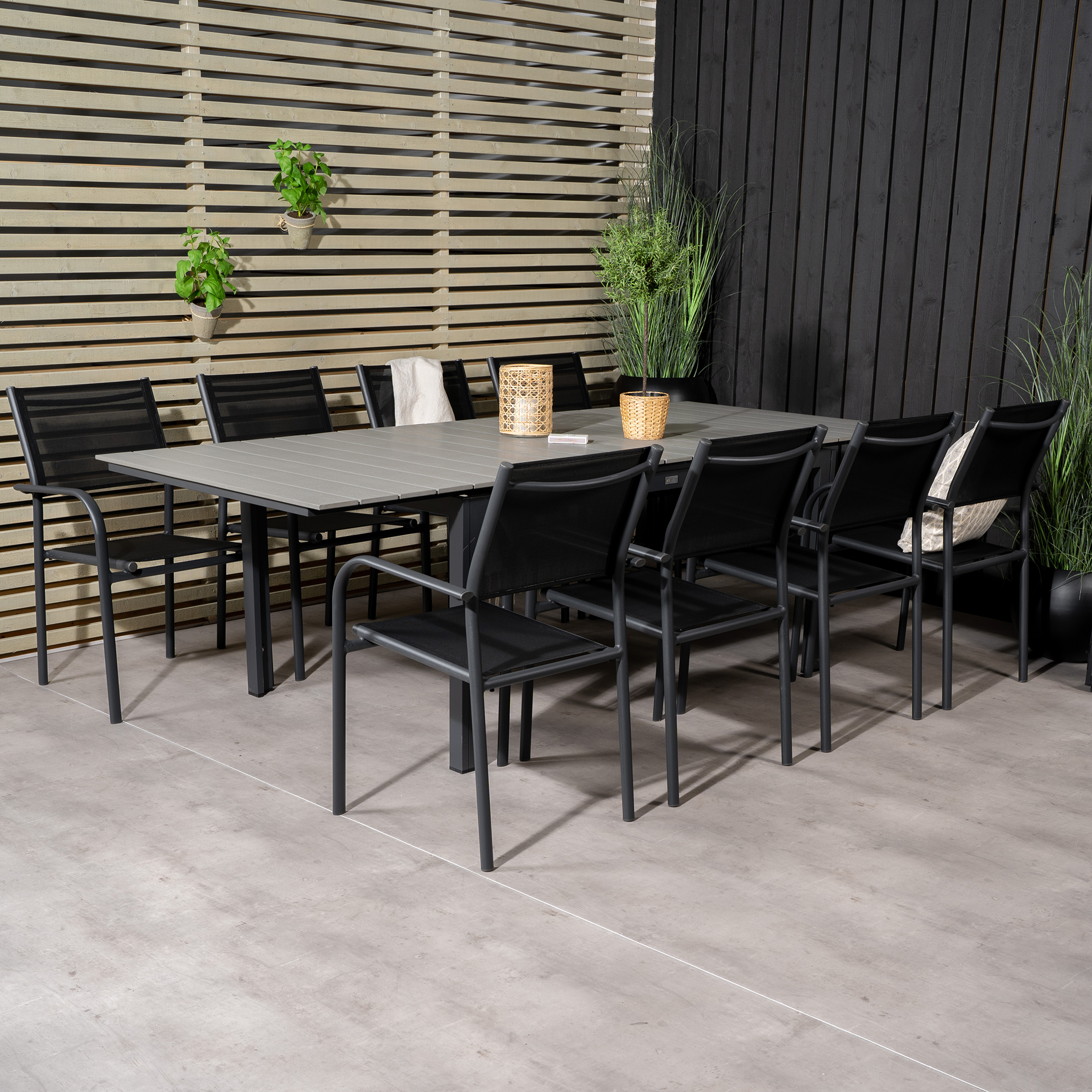 Matgrupp Venture Home Lova med åtta stycken Siri stolar. Bordet har en iläggsskiva som gör att du kan förlänga bordet från 1600 till 2400 mm.