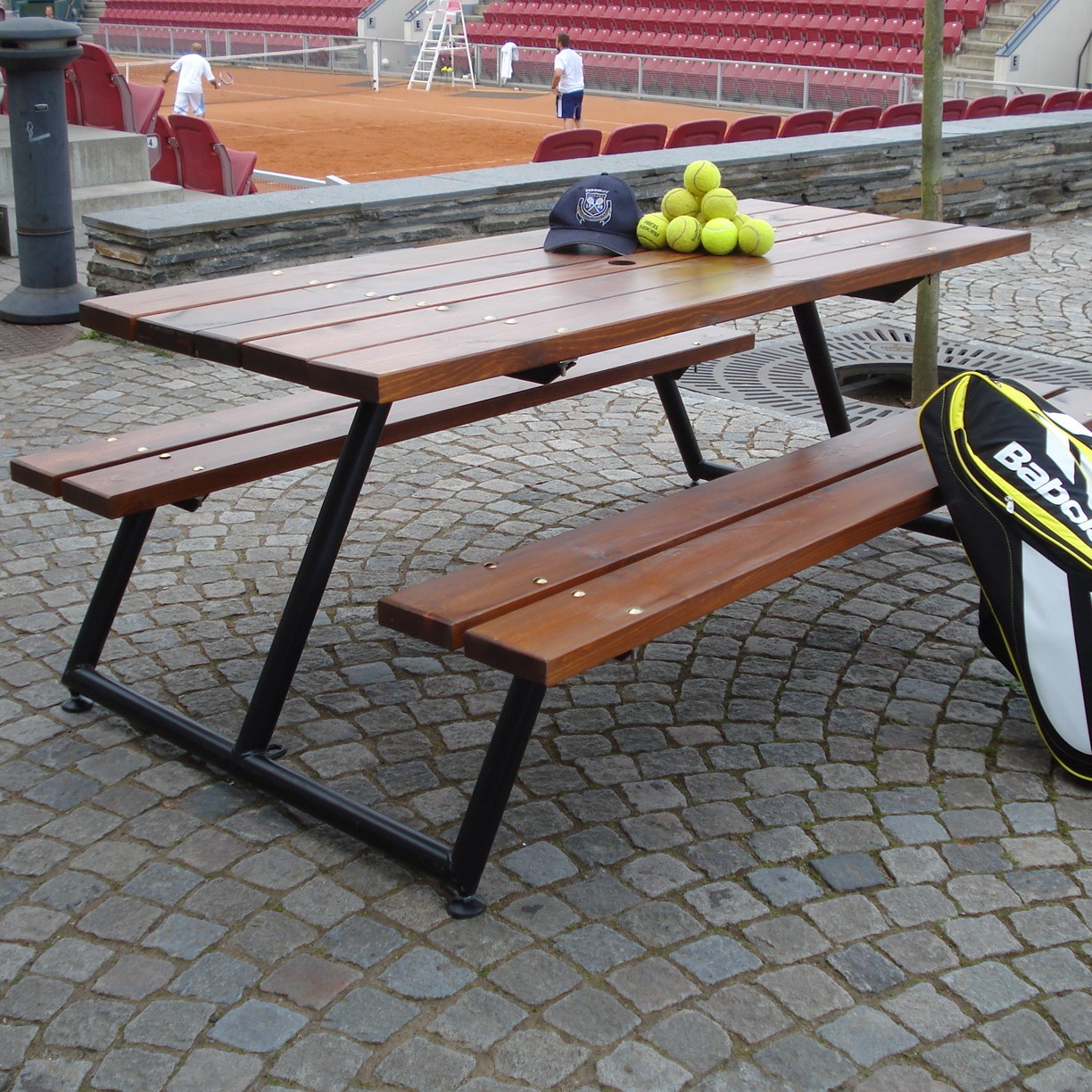 Ett modernt parkset, med bänk och bord i ett, från Eden Wood med plats för 6 personer. Det är tillverkat av svenskt FSC-furu och 45 mm varmgalvat, svart rörstativ.