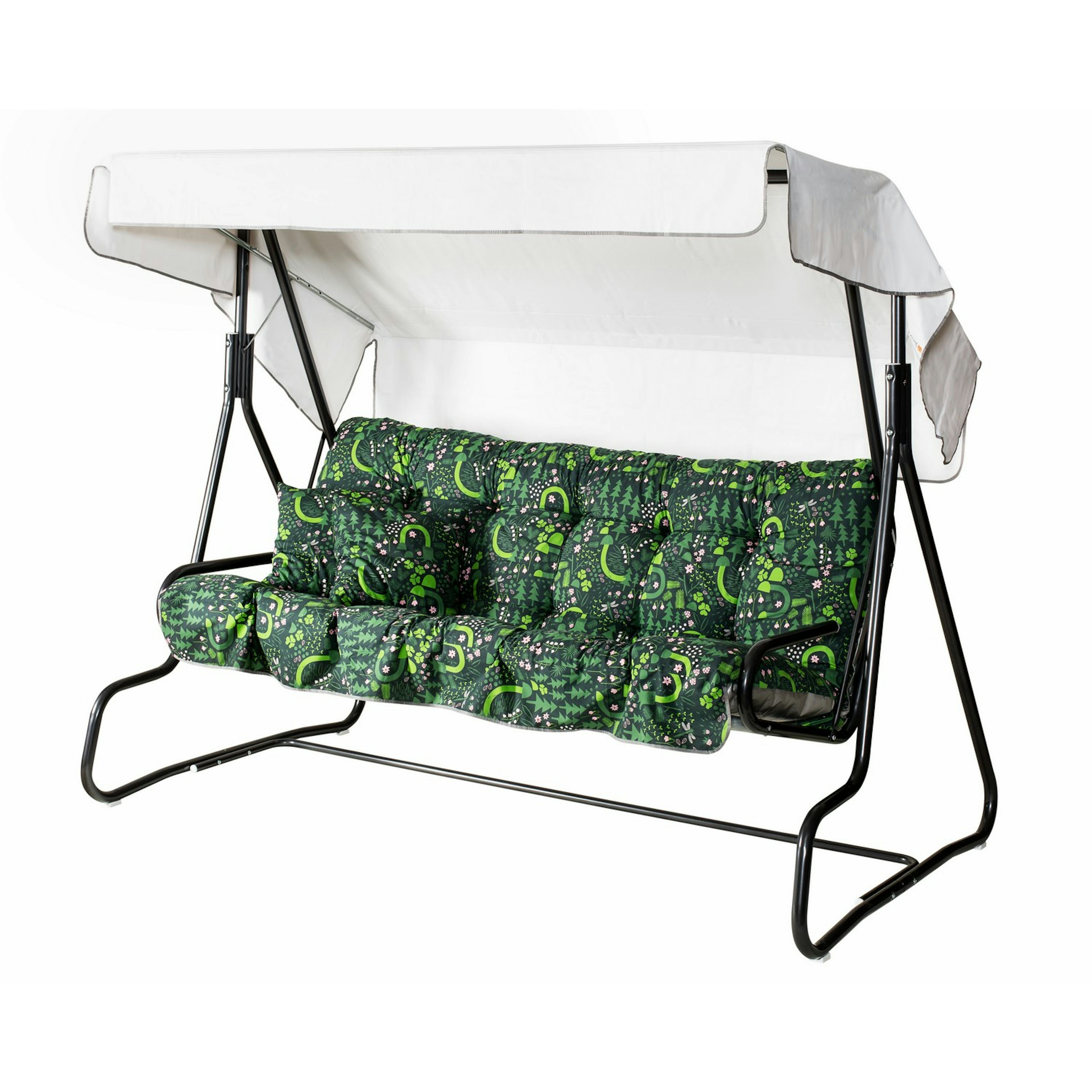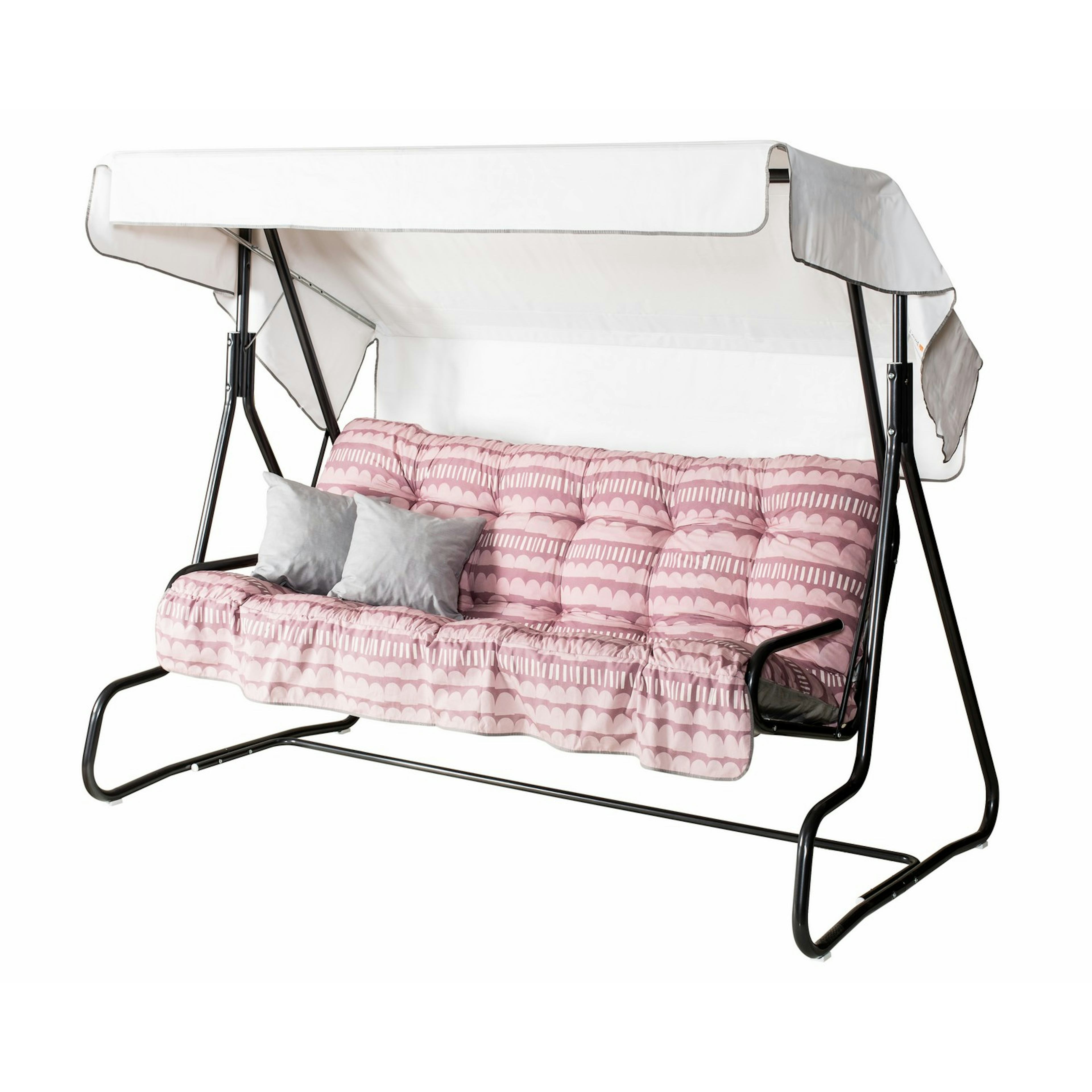 | Material | Pulvermålad stålrörsstomme, förzinkat metallgaller, textilen en blandning av bomull/ polyester, taket pvc- plast., Stål |