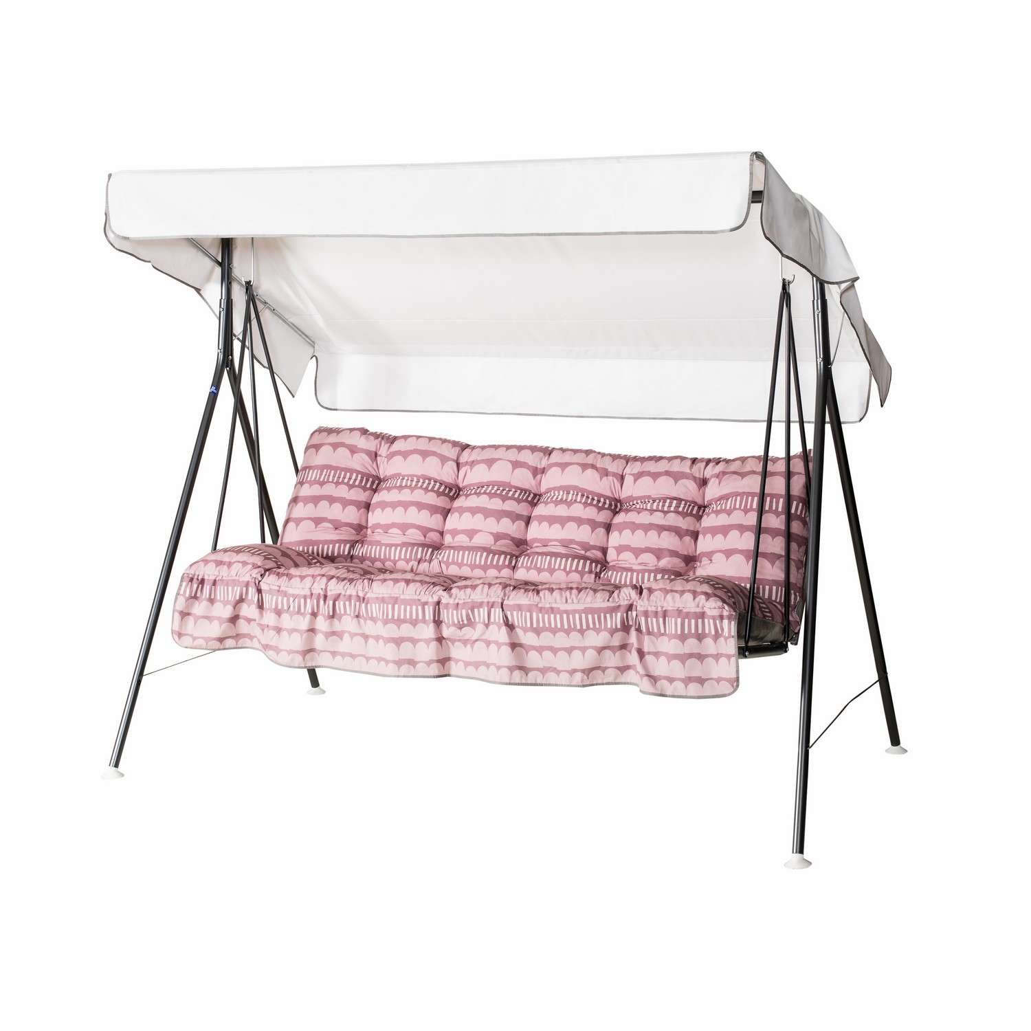 | Material | Pulvermålad stålrörsstomme, förzinkat metallgaller, textilen en blandning av bomull/ polyester, taket pvc- plast., Stål |