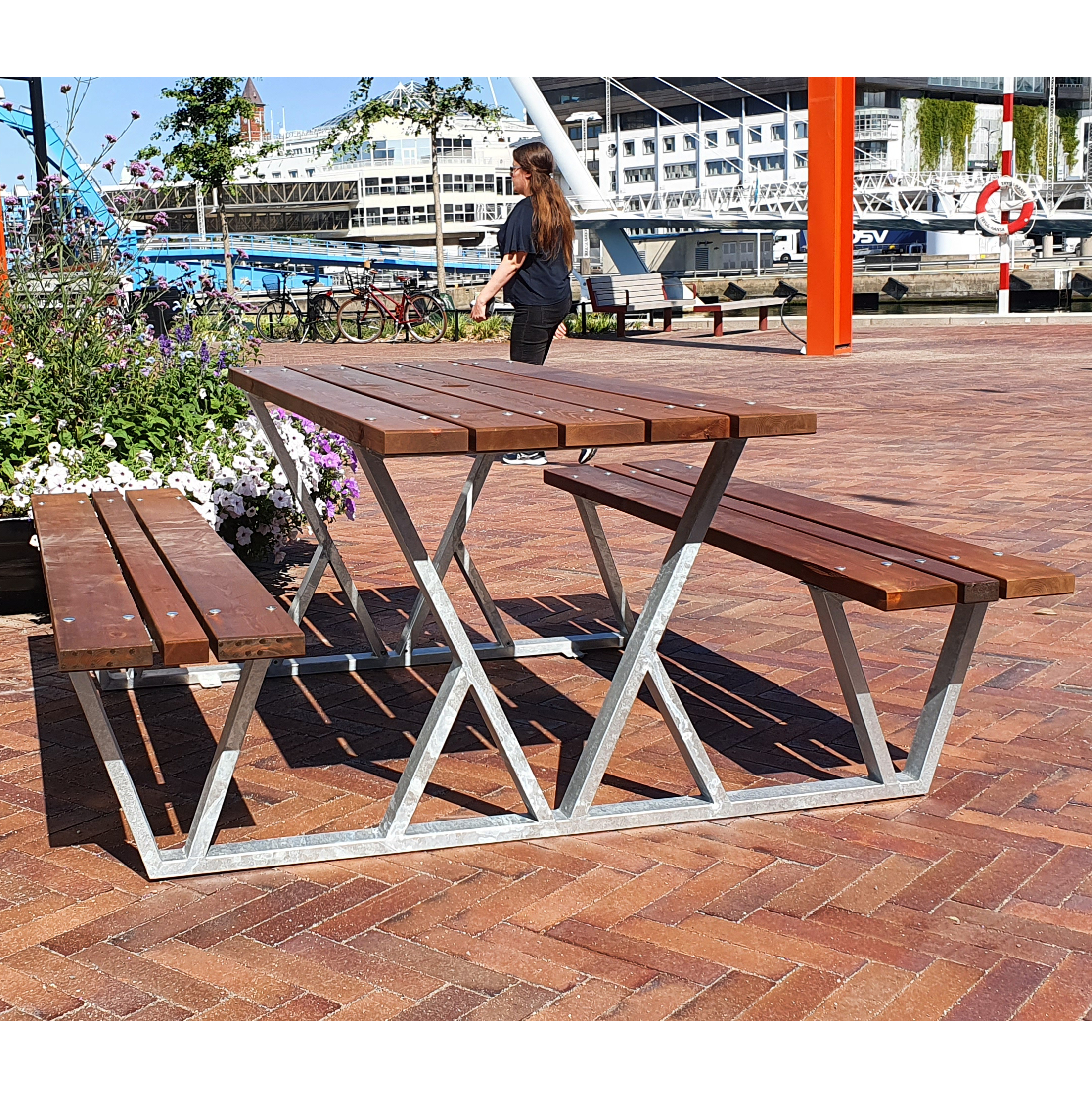 Wix är ett stabilt och modernt bänkbord från Eden Wood. Här kan 8 personer bekvämt ta en lunch eller en fika.