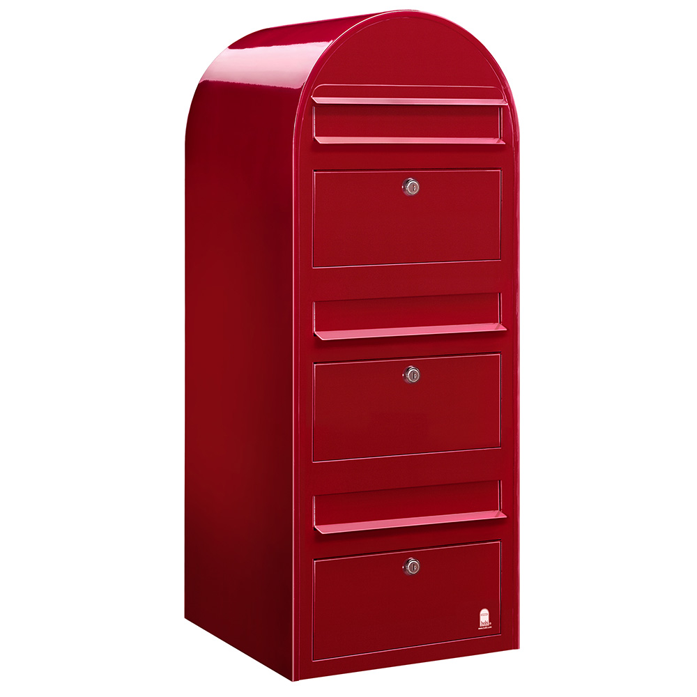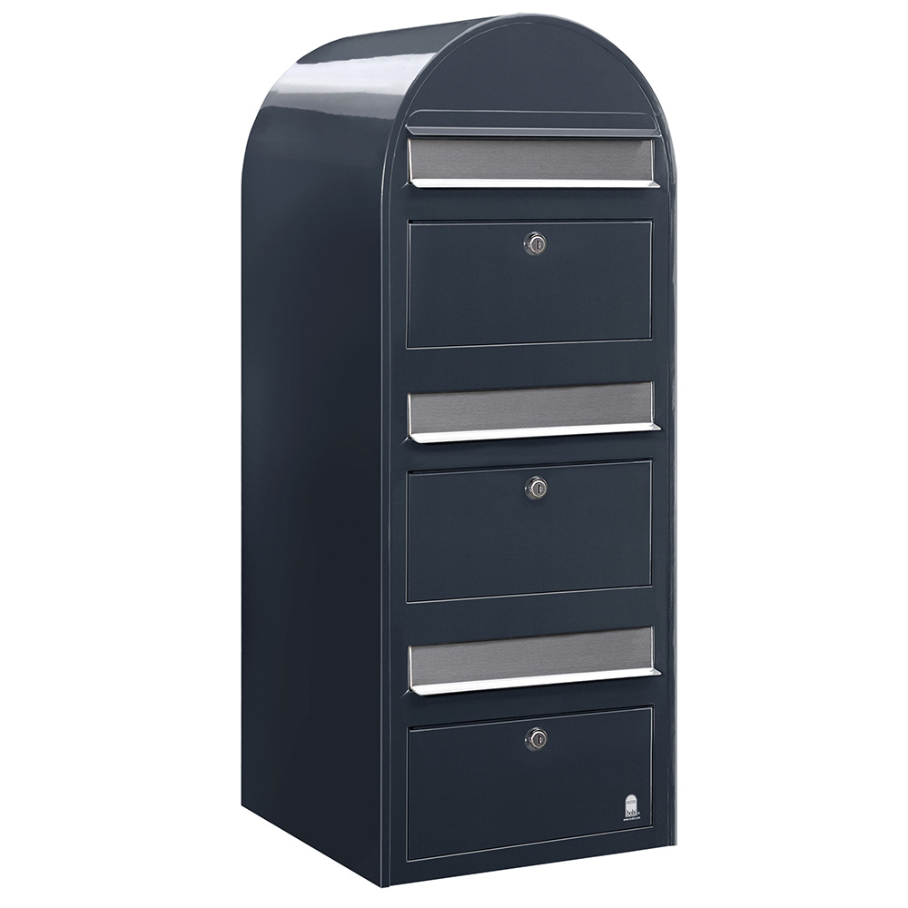 Denna brevlåda från Bobi är försedd med tre postfack på 35 cm djup. Passar utmärkt till flerfamiljshus eller som ett snyggare alternativ i en lägenhetsbyggnad.