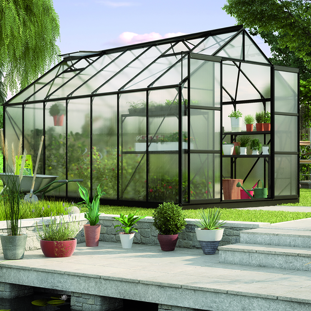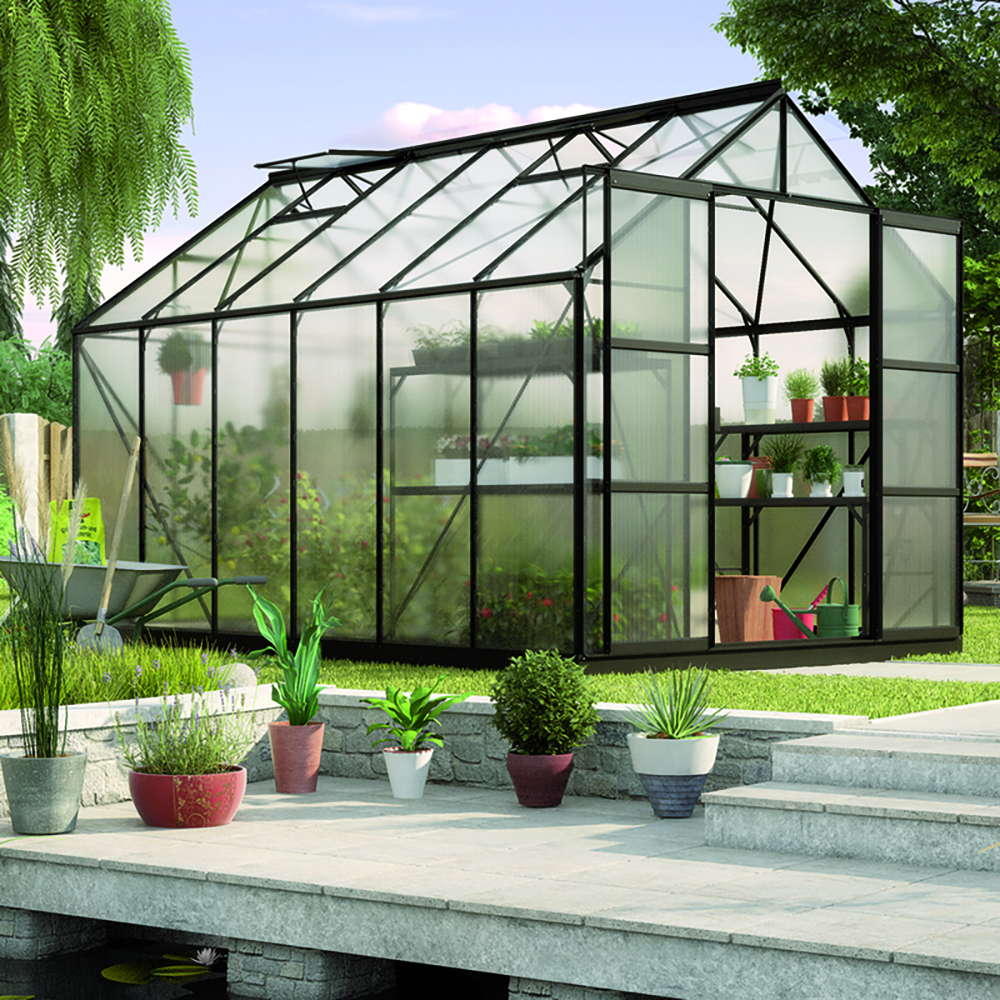 Växthus Vitavia Merkur 9900 6mm Polykarbonat Svart Med Sockel